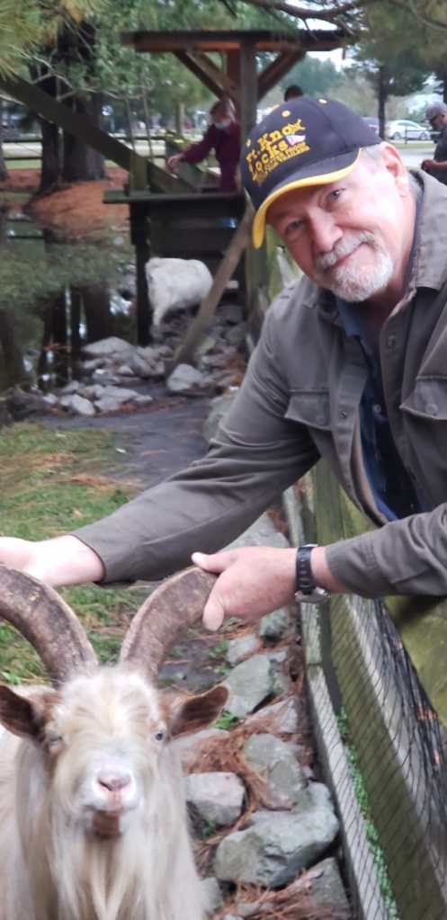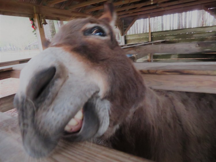 After a great visit with my brother, Carl and his wife, Linda, we continued south, and made our way to Mike’s Farm, where we stayed for the night. (This Harvest Host thing is so great.) Mike’s Farm has a big barn with all things North Carolina in it. We splurged on some wine and some moonshine strawberry jelly! They also have a homestyle restaurant with fantastic fried chicken, scrumptious corn, and delictable biscuits. As you can see, we made friends with some of the animals.