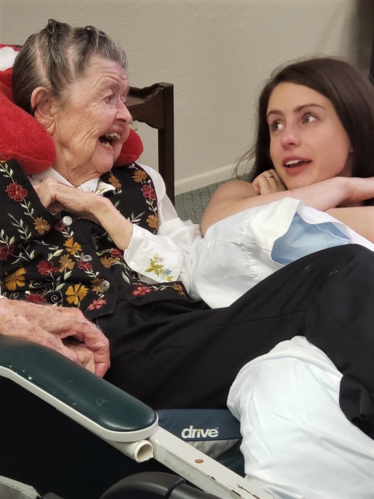 Vernon and Grace celebrated their 70th wedding anniversary just over a year ago. The ladies took great care to braid Grace’s hair and dress her in her prettiest clothes—it was precious to see how excited they were. They put her in a special wheelchair/bed and a van brought her over to the room where we gathered, children, grandchildren, great grandchildren. Her body lay on that bed in the midst of us, crooked and bent, mouth gaped, but some life in the eyes. My son, Joseph, who hadn’t seen her in many years, went outside and wept. My grandson, 3-year-old James, stared at her, as did 4-year-old Samuel. Spontaneously Samuel came and kissed her cheek, but James backed away from her—it was scary.